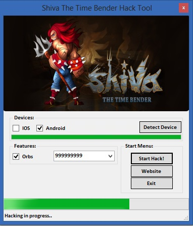 1. Connect your iOS or Android device to computer using USB. 2. Run [Shiva: The Time Bender Hack] 3. Click the [Detect Device] button. 4. Complete items amount you want to generate! (Choose and turn on from the Hack Tool Features) 5. Press [Start Hack] button to start adding the items to your game app. 6. Enjoy!