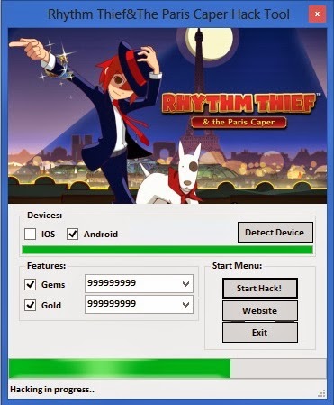 1. Connect your iOS or Android device to computer using USB. 2. Run [RHYTHM THIEF & the Paris Caper Hack] 3. Click the [Detect Device] button. 4. Complete items amount you want to generate! (Choose and turn on from the Hack Tool Features) 5. Press [Start Hack] button to start adding the items to your game app. 6. Enjoy!